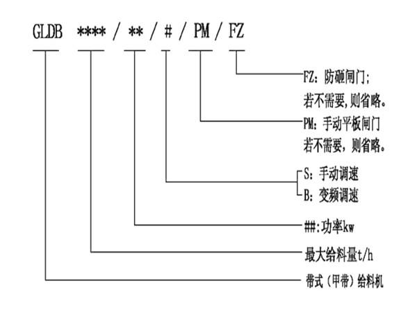 帶式(甲帶)給料機(jī)型號(hào)說(shuō)明: