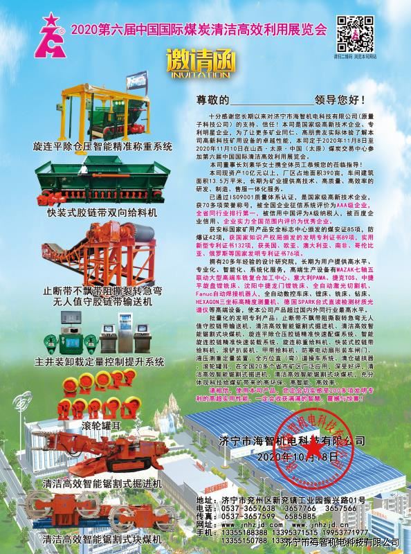 > 邀請函:第六屆中國國際煤炭及清潔高效利用展覽會