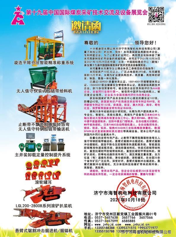邀請(qǐng)函-第十九屆中國國際煤炭采礦技術(shù)交流及設(shè)備展覽會(huì)